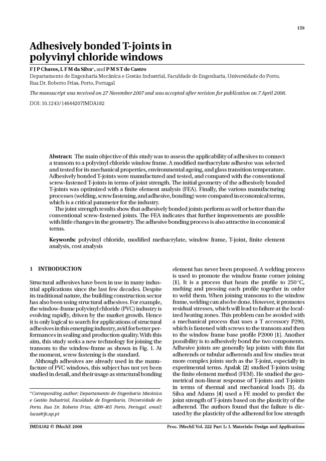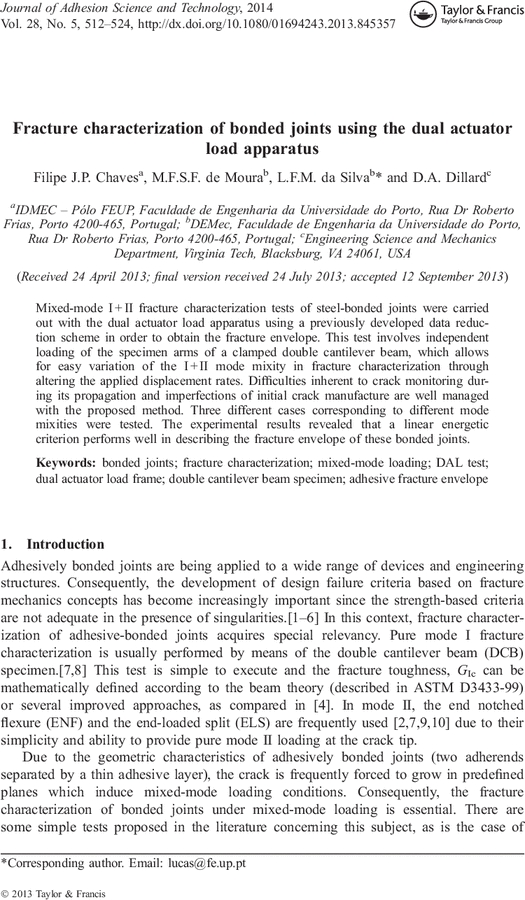 Fracture mechanics can be used to characterize adhesive joint mechanical behavior and thus help to improve the joint design and ultimately optimize solutions using adhesive bonding technology. This is one of my research interests that I have pursuit in the latest years.