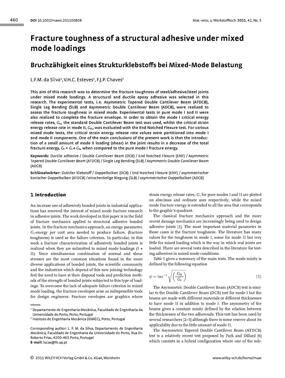 My work was focused on the fracture mechanics of adhesive joints in mixed mode I + II, by: